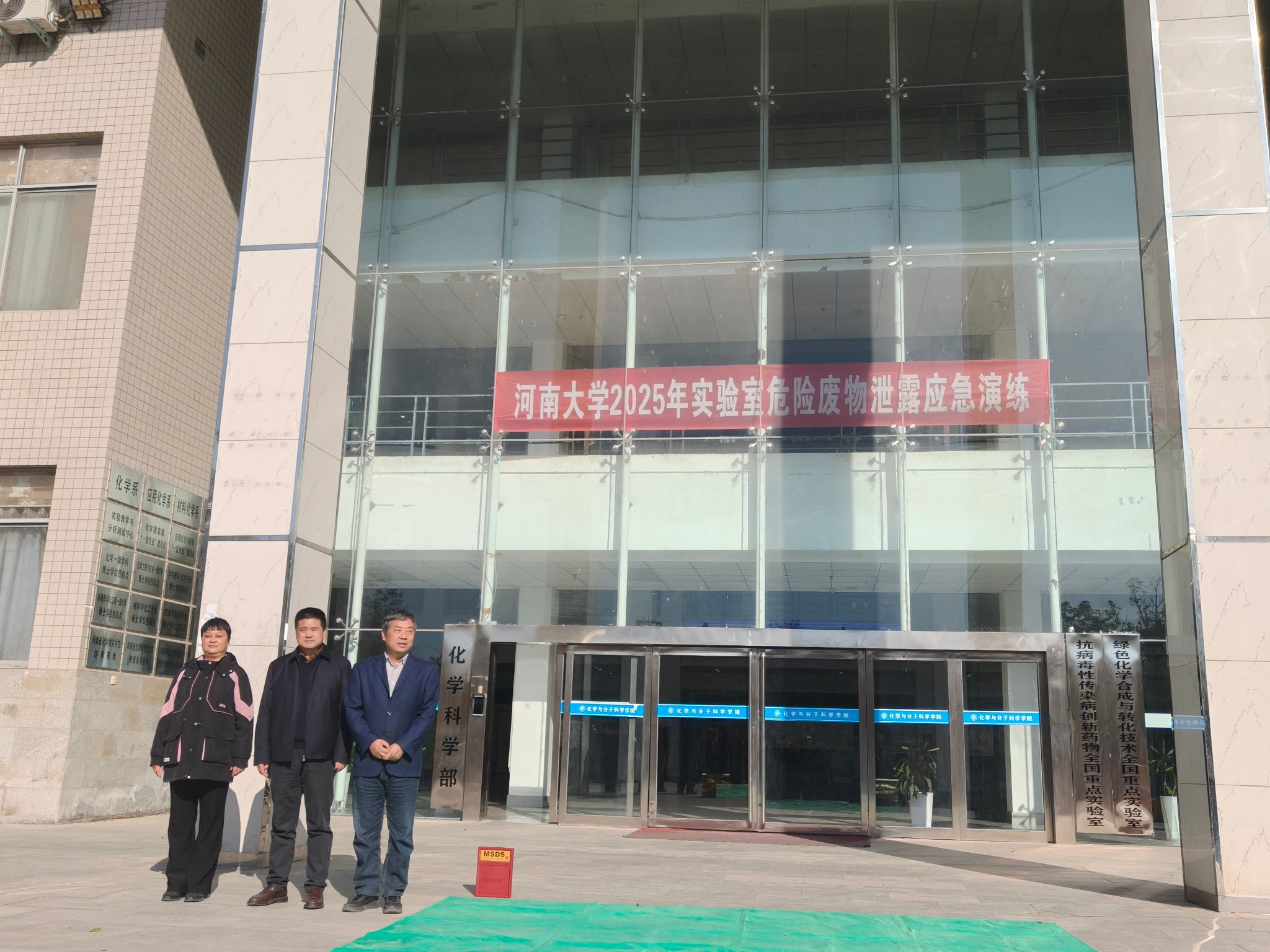 为深入贯彻落实国家和我省关于安全生产工作的决策部署,按照河南省高校第五届实验室安全文化月活动工作安排,11月21日,实验室与设备管理处在化学与分子科学学院楼前组织开展了“河南大学2025年实验室危险废物泄露应急演练”,保卫处、金明校区综合管理办公室以及化学与分子科学学院等部门和学院主要负责人、实验室安全员、学生代表等百余人参加学习观摩。